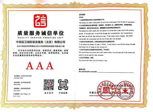 中保國(guó)衛(wèi)國(guó)際保安服務(wù)(北京)有限公司,屬中保國(guó)衛(wèi)集團(tuán)旗下子公司。能全方位的為大型客戶提供優(yōu)質(zhì)的安保、押運(yùn)服務(wù),是集人防和技防于一體的新型正規(guī)化綜合安保押運(yùn)服務(wù)企業(yè),提供人防、物防、技防、聯(lián)網(wǎng)報(bào)*、非武裝押運(yùn)等安防相關(guān)的一站式服務(wù)。